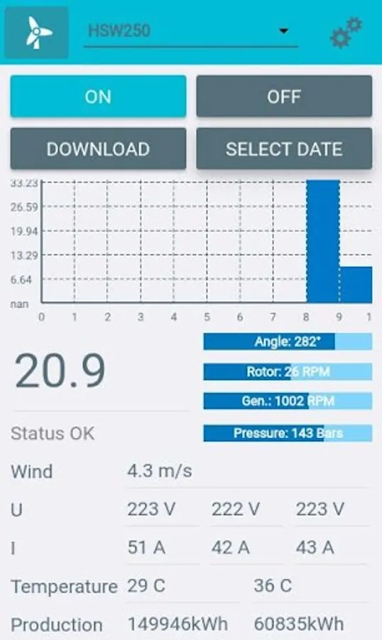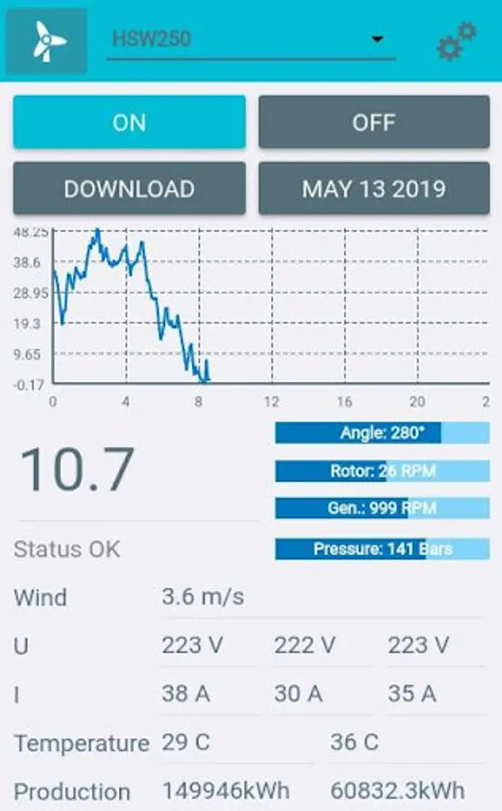 Solventers’s turbine controller keeps the wind turbine under constant surveillance by connecting to an external software developed by the company.