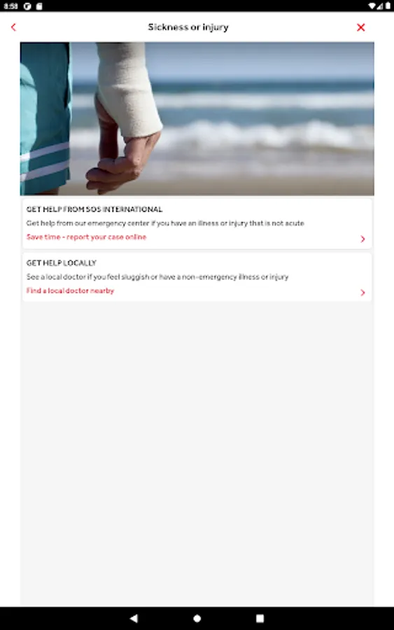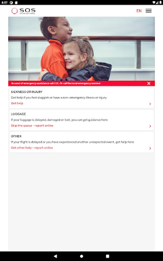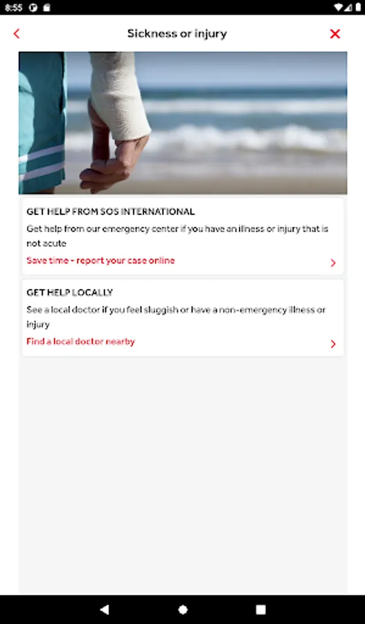 There is also an in-app possibility to contact SOS International’s emergency center by phone.