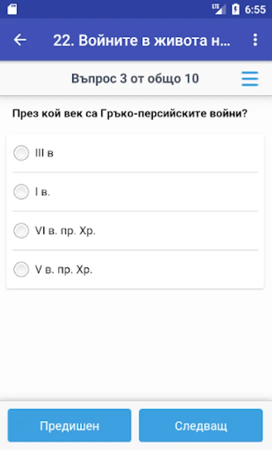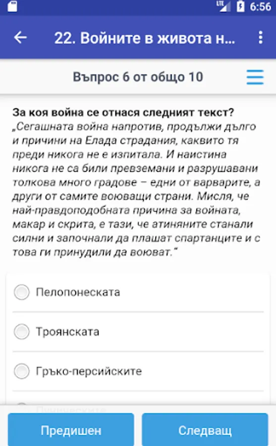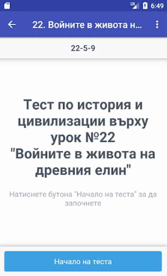 Tests in history and civilizations of 5. class new curriculum to each lesson for new knowledge and lessons exercises. Each test charging 10 randomly selected question to the appropriate lesson from 10 types of tasks (for facts, history, personalities, terms, images, maps, springs, etc.). After the test results are displayed and correct answers. The database includes about 1,800 questions.