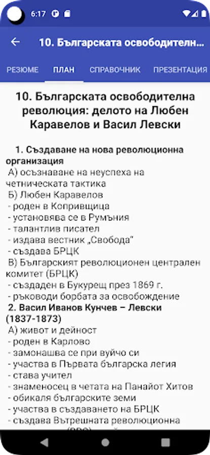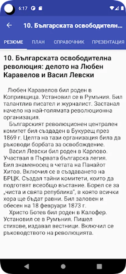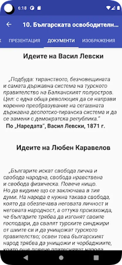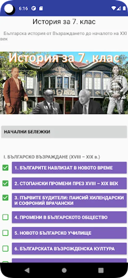 Application on history and civilizations for the 7th grade - Bulgarian history from the Renaissance to the beginning of the XXI century.