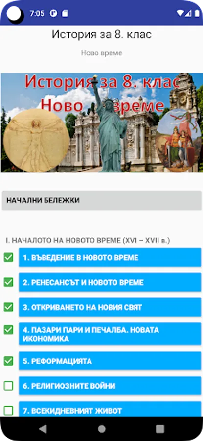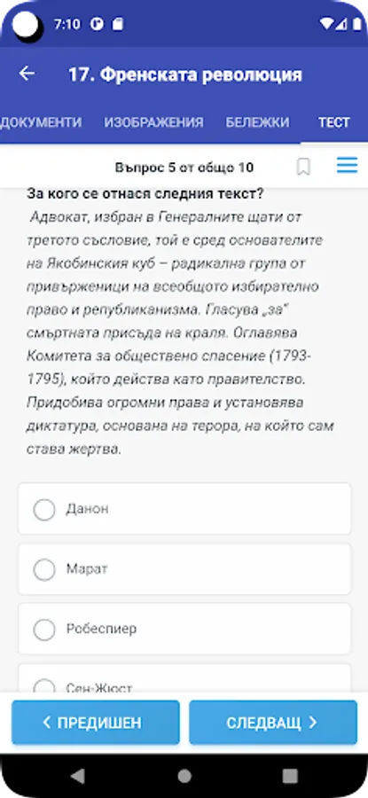 8. Test (internet connection required) – lesson test with 10 randomly selected questions.