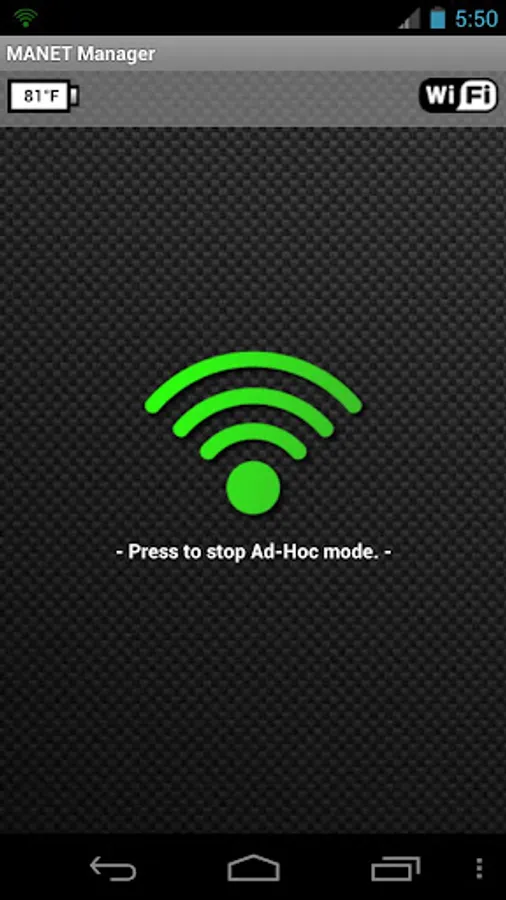 This simple app allows you to enable and configure a Mobile Ad-Hoc Network (MANET) for your device. Install the app on another device and they will automagically recognize and link to each other when they are within ~500 feet. Install the app on even more devices and expand the range of your mesh network! The app will route data from one device to another and "hop" across other devices in the mesh to get there. In short, the more devices in your mesh the greater your communication range.