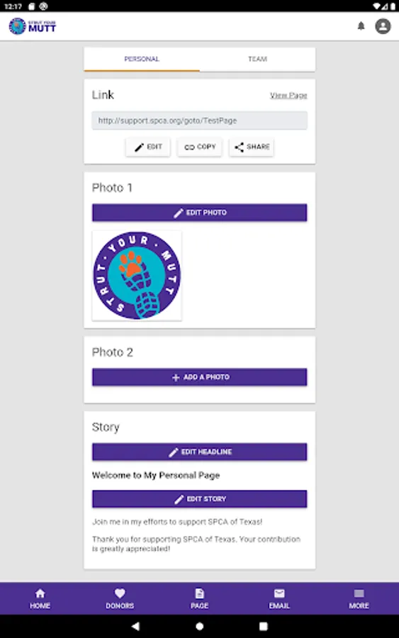 * Update your fundraising page with your story and/or a photo using a photo stored on your device