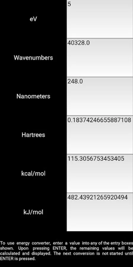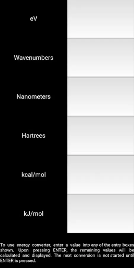 Allows users to quickly switch between common energy units used in spectroscopy and physical chemistry.