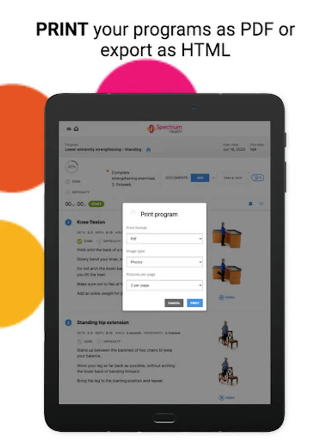 In partnership with Physiotec, Spectrum Health patients can gain access to an App that will allow them follow and track their prescribed exercise programmes more effectively; research shows that this leads to quicker recovery times. The App was created by physiotherapists for people of all ages and for a wide variety of injuries and conditions.
