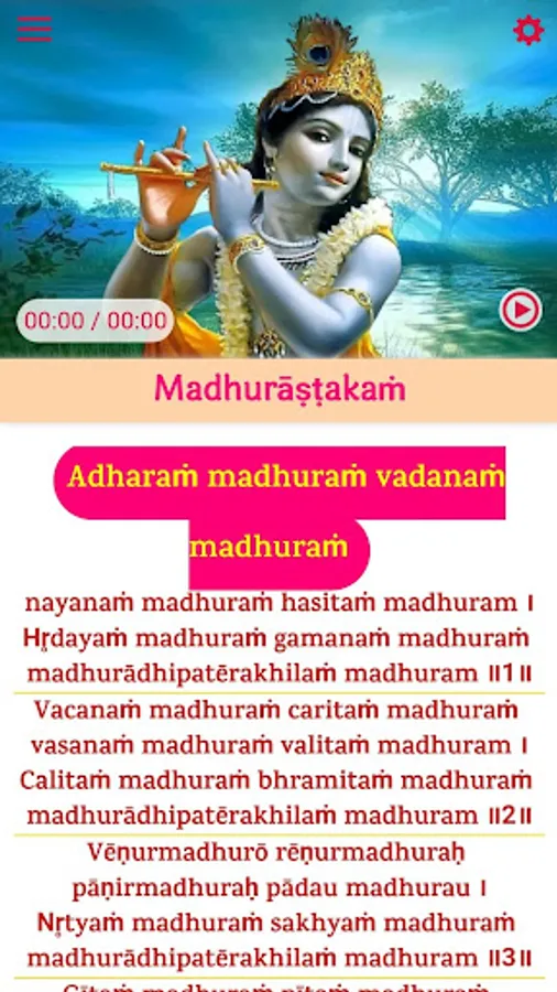 A collection of 24 Strotras with Audio in Romanized text and Devanagari text.