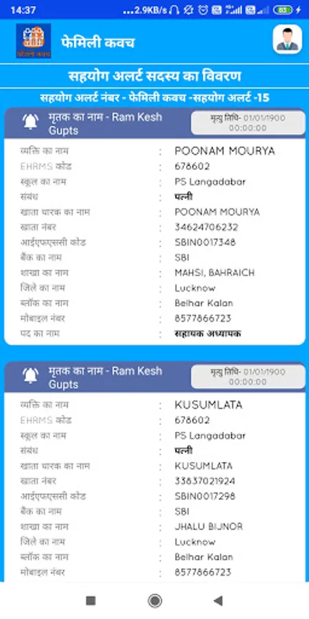 7. सहयोग डाटा को फीड करने के बाद आप लोगों को आपके मोबाइल पर एक सूचना भेज दी जाएगी |