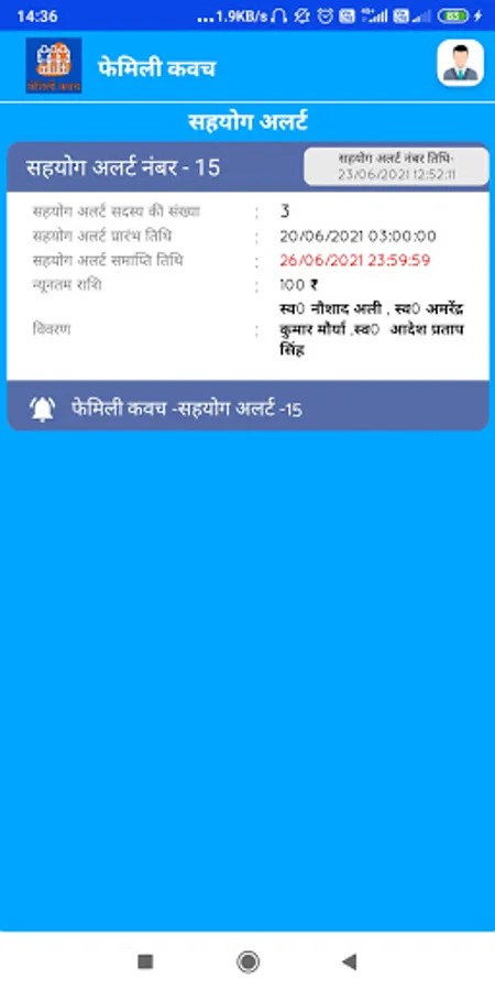 8. यदि आप अपना सहयोग किसी कारण भूल गए होंगे तो आप को आप के मोबाइल ऍप में अलर्ट जारी होगा जो आप को अवगत कराएगा|
