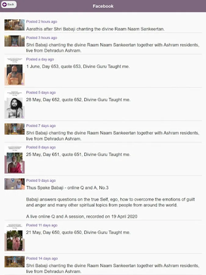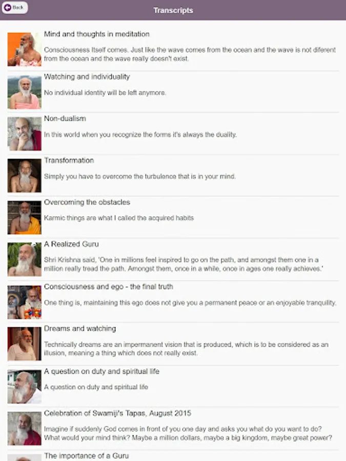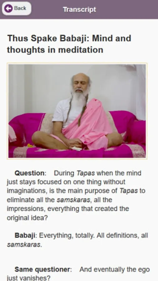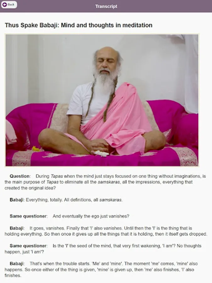 * Talks from Babaji on meditation and spiritual matters including transcripts, and audio and video recordings