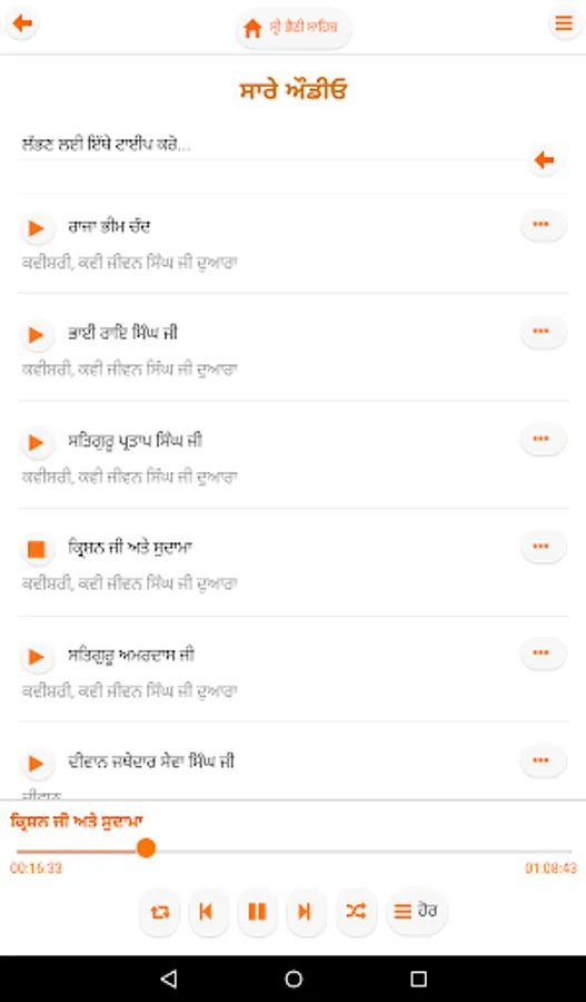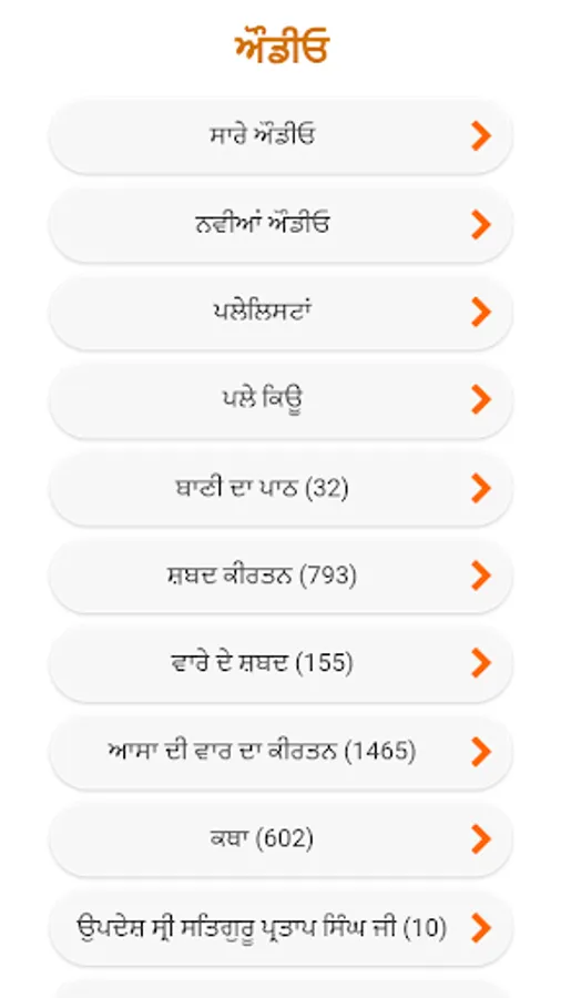 * Listen 4000+ audios of Updesh, Pahth/Banni Reciations, Diwan, Katha, Shabads, Vaar, Kavishri, Poems, Lectures, Classical performances, and more.