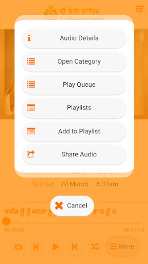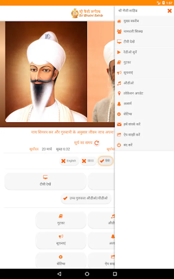 * Set Sun Rise based alarms to Wake Up hours before Sun Rise or/and start Chandi Di Vaar recitation based on time you take
