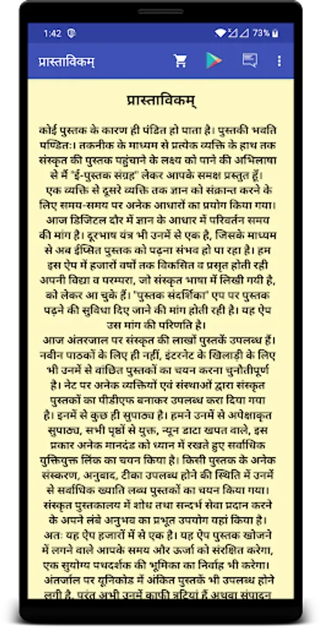 एक व्यक्ति से दूसरे व्यक्ति तक ज्ञान को संक्रान्त करने के लिए समय-समय पर अनेक आधारों का प्रयोग किया गया। आज डिजिटल दौर में ज्ञान के आधार में परिवर्तन समय की मांग है। दूरभाष यंत्र भी उनमें से एक है, जिसके माध्यम से अब ईप्सित पुस्तक को पढ़ना संभव हो पा रहा है। हम इस ऐप में हजारों वर्षों तक विकसित व प्रसृत होती रही अपनी विद्या व परम्परा, जो संस्कृत भाषा में लिखी गयी है, को लेकर आ चुके हैं। "पुस्तक संदर्शिका" एप पर पुस्तक पढ़ने की सुविधा दिए जाने की मांग होती रही है। यह ऐप उस मांग की परिणति है।