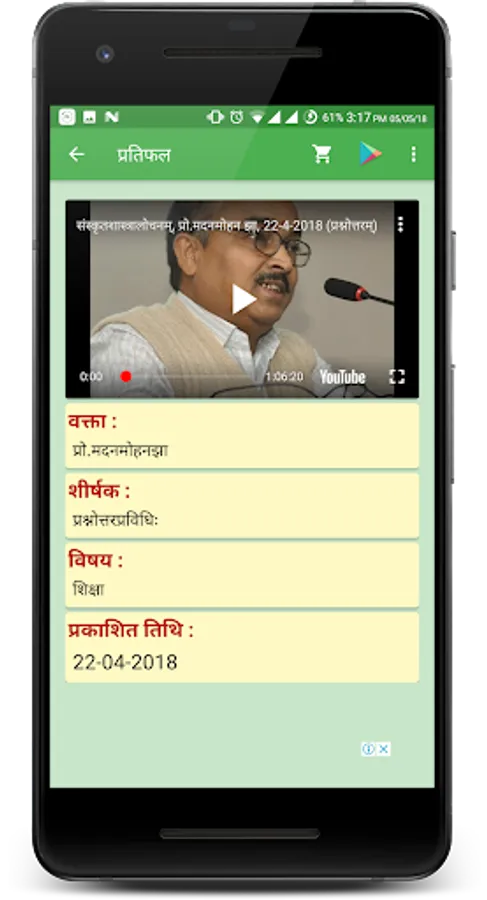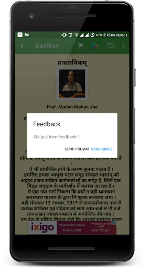 चुंकि सारे व्याख्यानों को यदा कदा सुनने हेतु आमुख पटल पर खोजना अथवा यूट्यूब पर ढूंढना कष्टसाध्य होता है । अतः हमने सोचा कि क्यों न सारे व्याख्यानों का या शास्त्रालोचनम् का एक एण्ड्रायड एप बना लिया जाए जिससे कभी भी किसी भी विद्वान का व्याख्यान सुन सकते है । इस एप में विद्वानों के नाम से अथवा उनके द्वारा प्रदत्त व्याख्यान के शीर्षक से व्याख्यान का अन्वेषण कर सकते है । व्याख्यान के अन्वेषणोपरान्त व्याख्याता के चित्र पर क्लिक करने से वह व्याख्यान उपभोक्ता देख सकते है । भविष्य में भी प्रतिसप्ताह होनेवाले व्याख्यानों को भी इस एप में जोडा जा सकेगा । उपभोक्ता अपने एप को जब कभी अपडेट करेंगे तो नए व्याख्यान उनके एप में स्वतः जुड जाएंगे । इस तरह जिस किसी के पास यह एप होगा वे किसी भी व्याख्यान ने वंचित नहीं रह पायेंगे । संस्कृतं भारतं पर जितने भी लाइव्ह कार्यक्रम में काव्यपाठादि हुए है या होंगे उन्हें भी इस एप में भविष्य में जोडा जाता रहेगा । जिससे उपभोक्ता लाभान्वित हो पाएंगे । अंत में सभी को धन्यवाद देकर निवेदन करता हूं कि वे अपना अभिमत एवं उद्गार अवश्य प्रकट करें ।