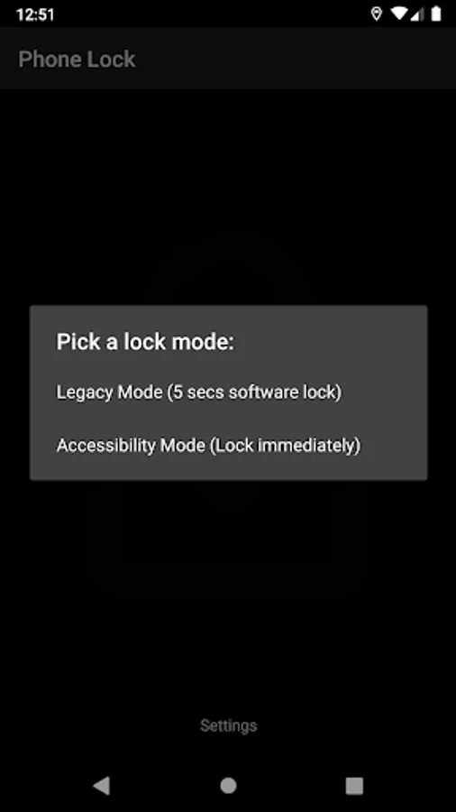Please enable this app at Accessibility -> Downloaded services -> Phone Lock -> On