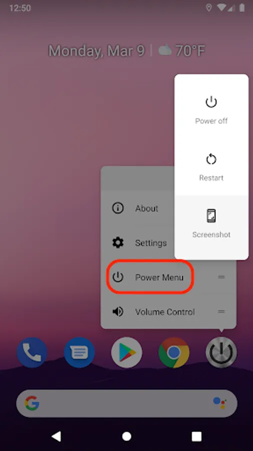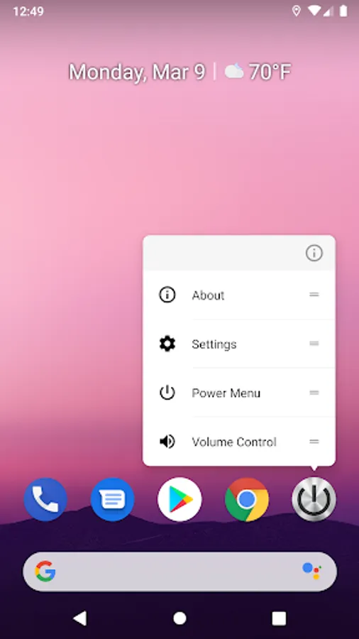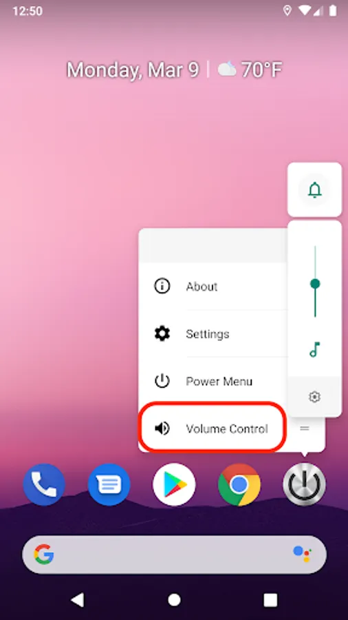 - Long press on App icon that you will got pop up sub-menu -- volume control and power menu (some of Launcher is not supported this feature)
