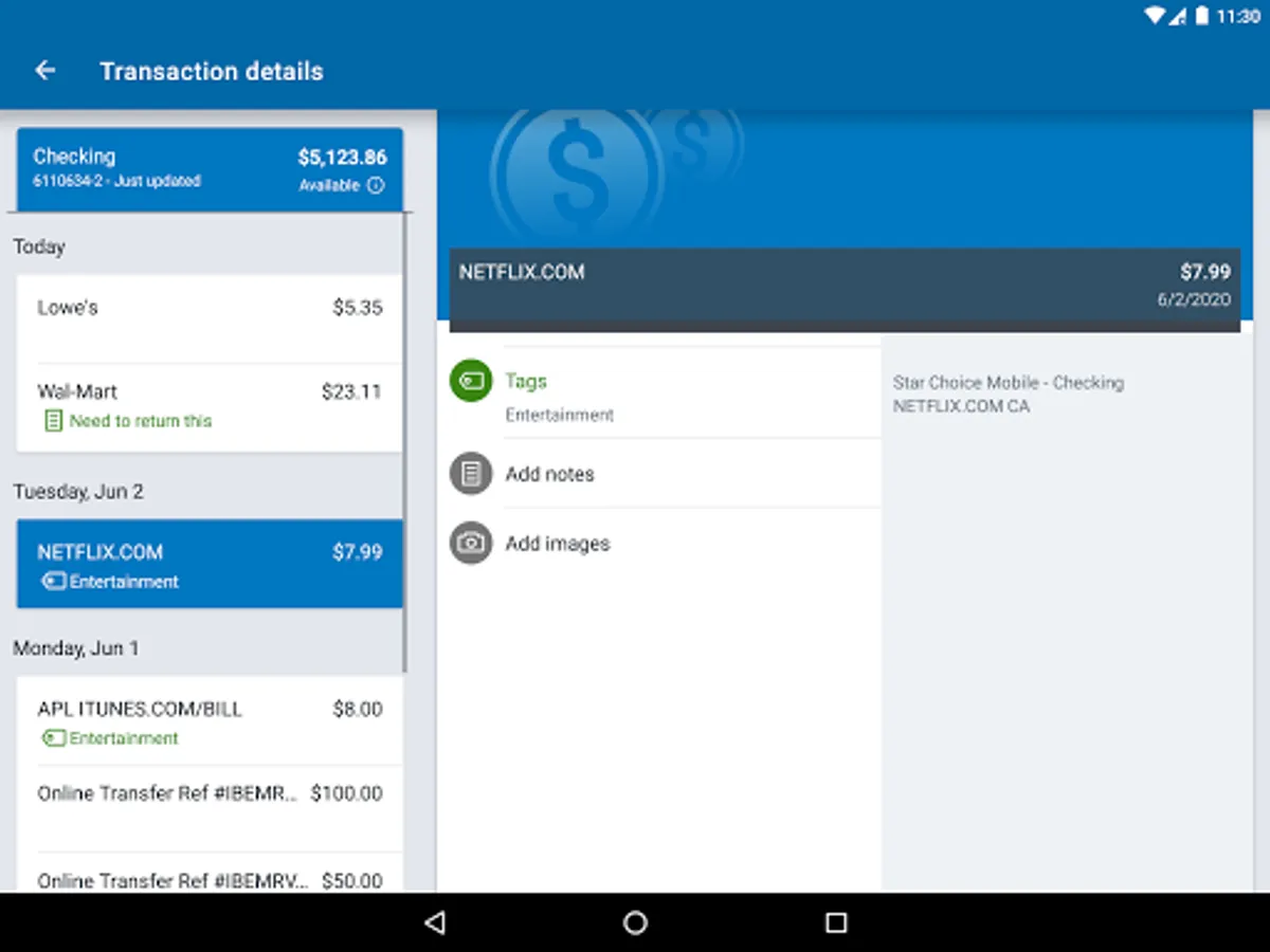 -Keep your transactions organized by allowing you to add tags, notes and photos of receipts and checks.