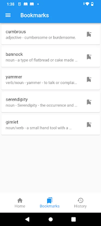 Bookmarking Feature: Never lose track of interesting words, idioms, or phrases. Bookmark them and refer to them anytime from the Bookmark screen.