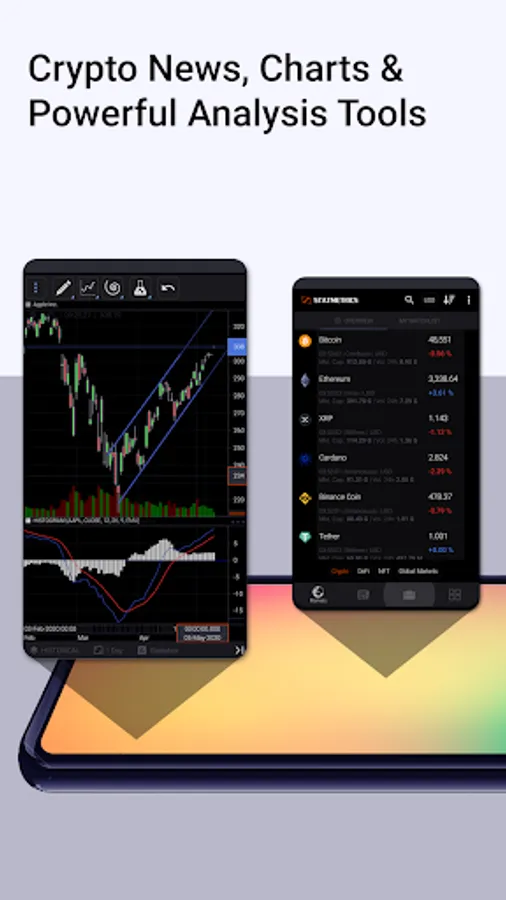 - Live quotes and charts for major cryptocurrencies and financial instruments (indices, stocks, bonds, mutual funds, ETFs, commodities, currencies, interest rates, futures and options), traded on global exchanges.