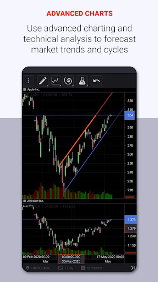 - Interactive high-performance charting and broad range of drawing tools.