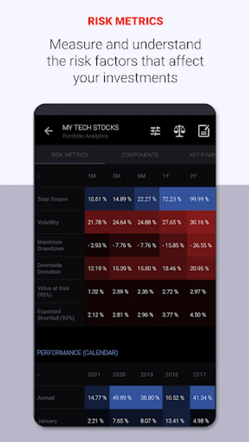 - Quantitative performance and risk analysis of portfolio and its components.