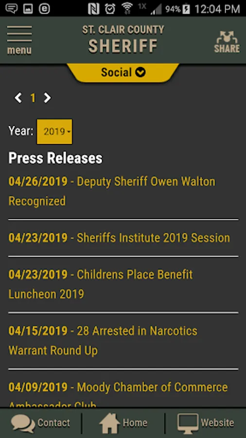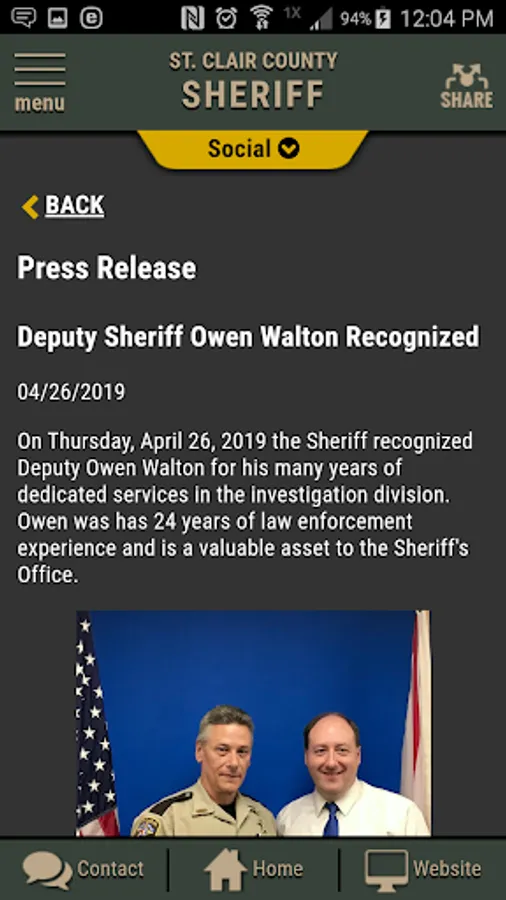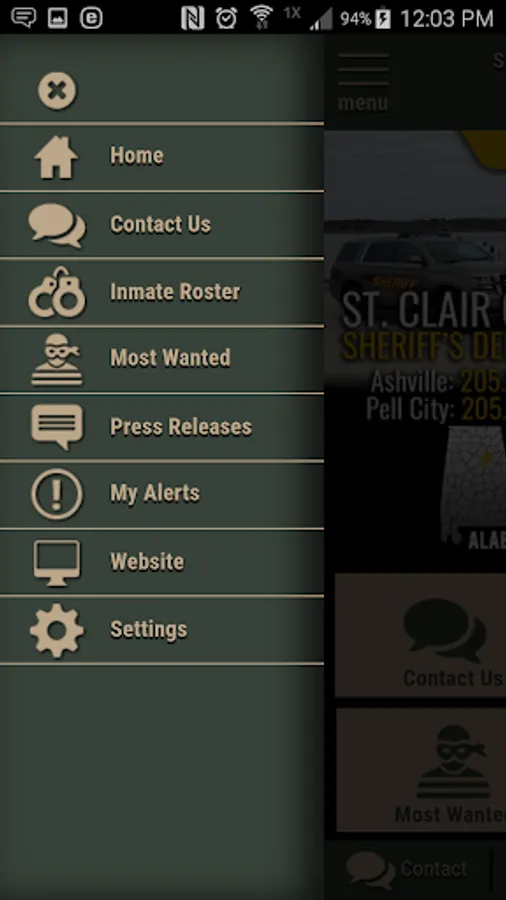 The app has public information for press releases, inmates, most wanted, and special alerts. Contact us messages can be sent to the Sheriff's Office.
