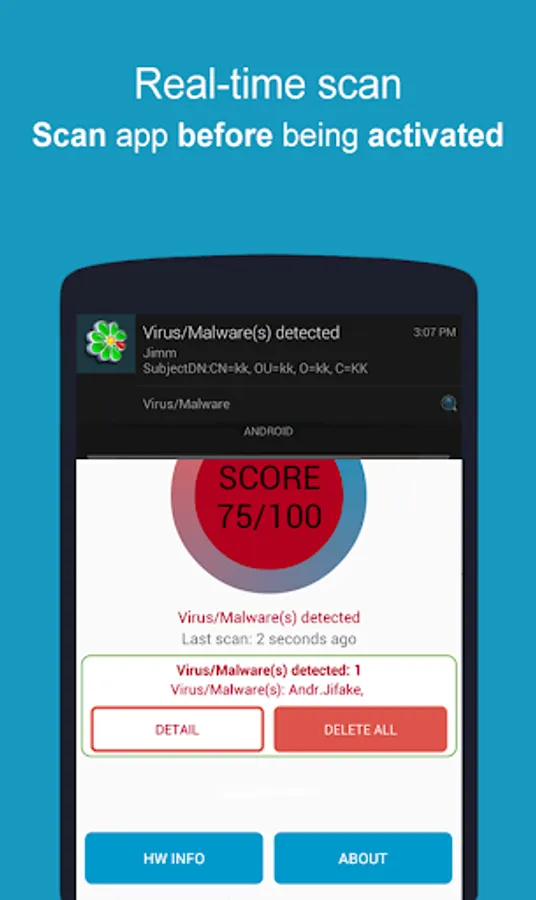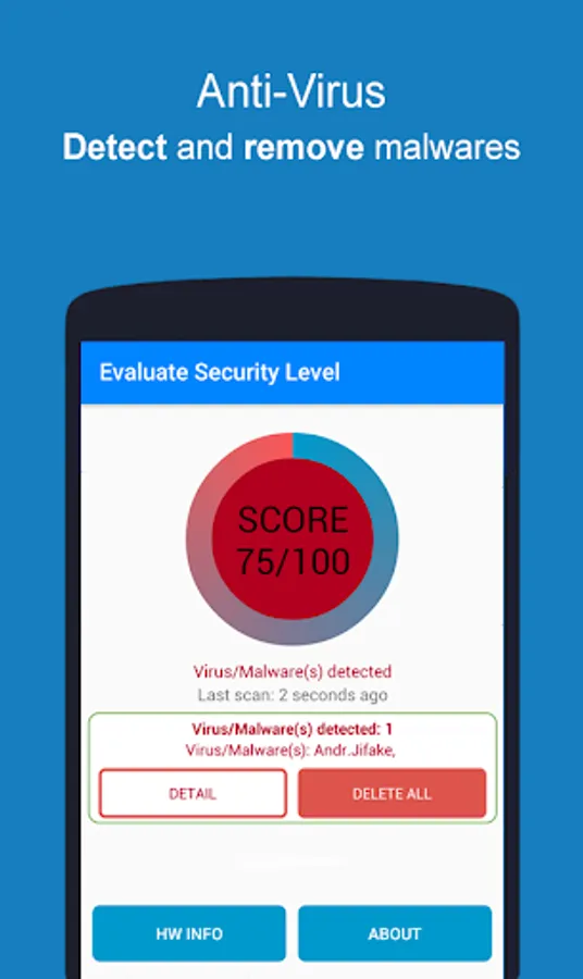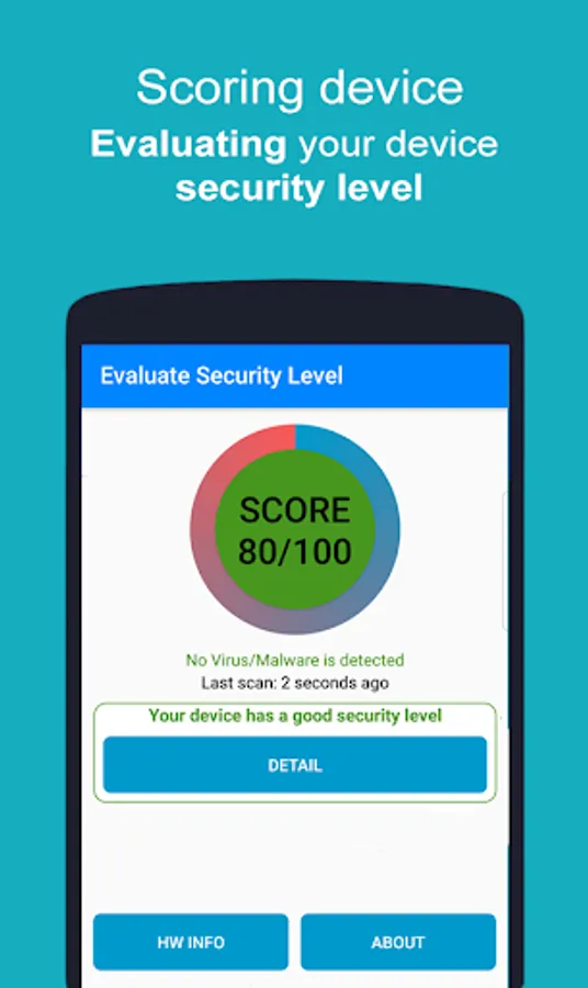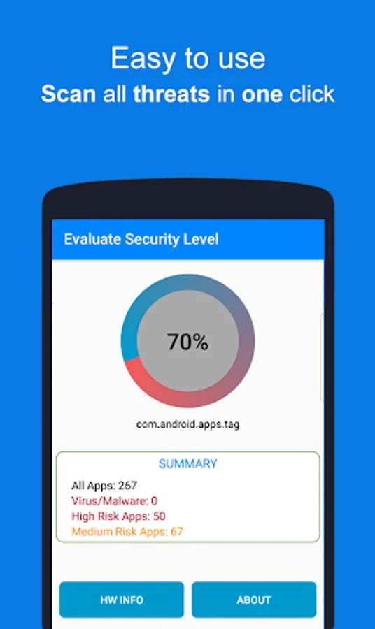 ★ Score your device security level: Calculate your device security level based on scan all apps in the device.