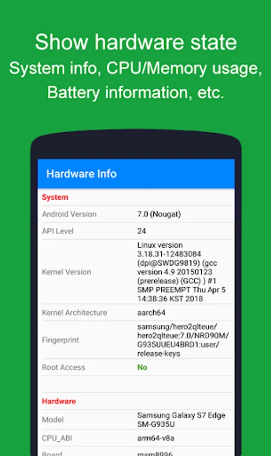 ★ Evaluate hardware state: System information, CPU/Memory usage, and Battery information, etc.