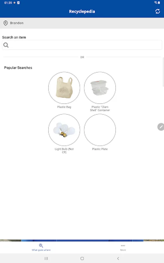 Search for waste materials to learn how they can be recycled, composted, or disposed of, for Multi-Material Stewardship Manitoba.