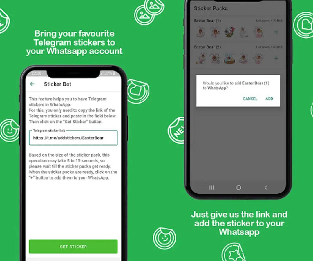 Also, if you can’t find your favorite sticker for WhatsApp, you can convert Telegram stickers to WhatsApp stickers with Sticker Market. Just enter the Telegram sticker link in the Sticker Bot page and after a few seconds, the sticker pack will be ready for WhatsApp.