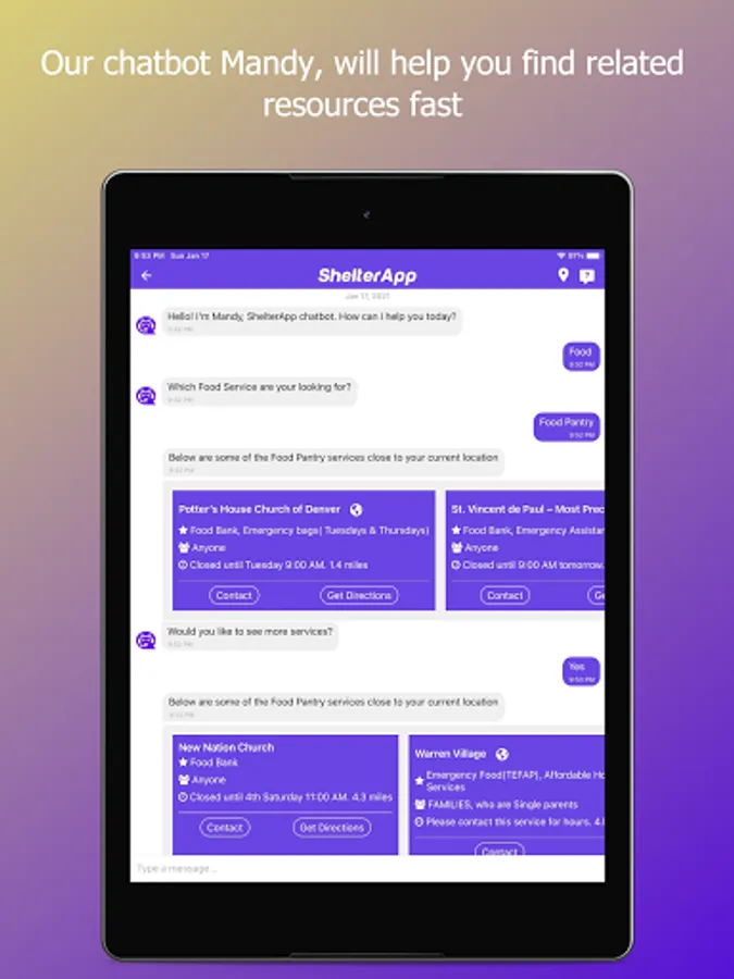 Shelter App is an AI Powered Chatbot that connects at-risk youth to services like Youth Drop-in Centers, Homeless & Run Away Youth Shelters, LGBT Advocacy and Support Groups, After School Programs, Crisis or Hot lines, Food Banks, Soup Kitchens, Food Pantries, Transitional Housing, Domestic Violence Shelters, Pet Shelters, Rent/Utility Assistance, Affordable Housing Options, Free or Low-cost Medical & Dental Clinics, Mental Health Centers, HIV/STI Testing Centers, Syringe Exchange Programs, Clothing Resources, Free Legal clinics, Hygiene Services, Showers, Restrooms, Homeless and Low-income Family Resources, Education & Employment Assistance Services, Job Training Programs, Life Skills Training, Mentorship & many more resources for Homeless and People in Need.