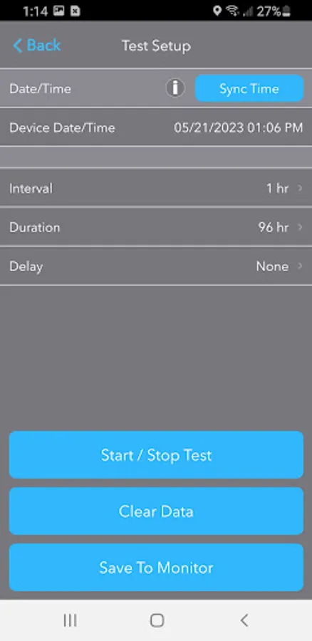 1027 users have the option to manual enter the device serial number and correction factor to be used in reports as well as optional adjustment of test start time during data retrieval. For 1030 and 1028-XP users the application allows to clear data from monitor memory, and start a new test directly from the application including setup of all test parameters.