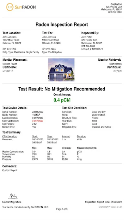 Further streamlining workflows, OneRADON enables users to generate and send customized inspection reports to the OneRADON desktop or cloud applications as well as submit ANSI/AARST compliant reports to SunRADON's certified laboratory for approval.