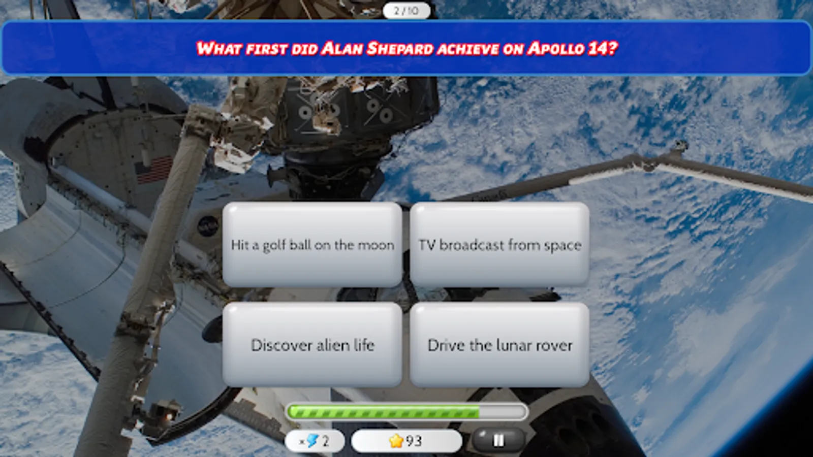Ready to explore the wonders of space? Test your cosmic knowledge in this fast-paced, fun, and educational quiz game that takes you on a journey through the Solar System, historic space missions, sci-fi classics, and cutting-edge space technology.