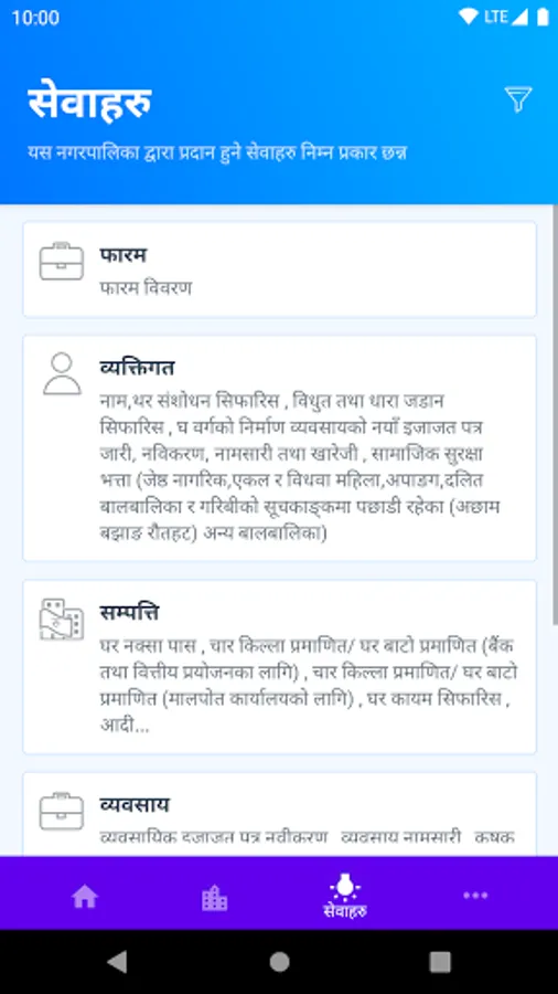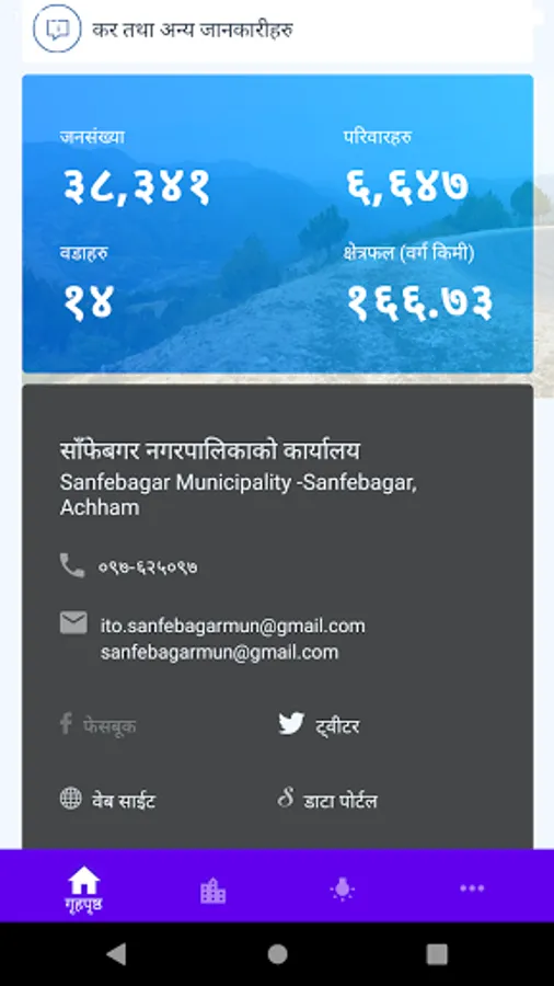 The Sanfebagar Nagarpalika Mobile App is one-place information of municipality notices, services, policies, maps of Sanfebagar Nagarpalika. The citizens can use this app to communicate, to reach the correct official, provide grievance and feedback to the local government.