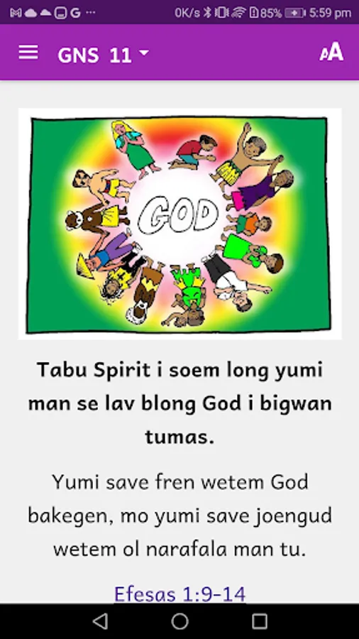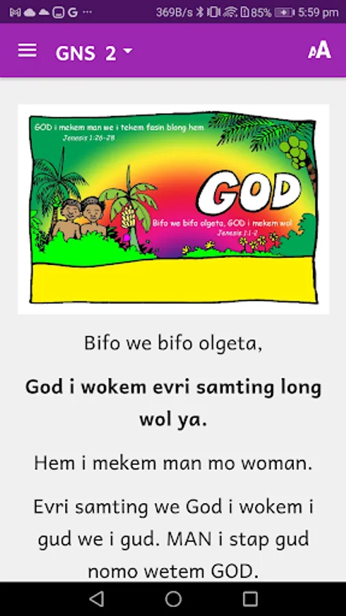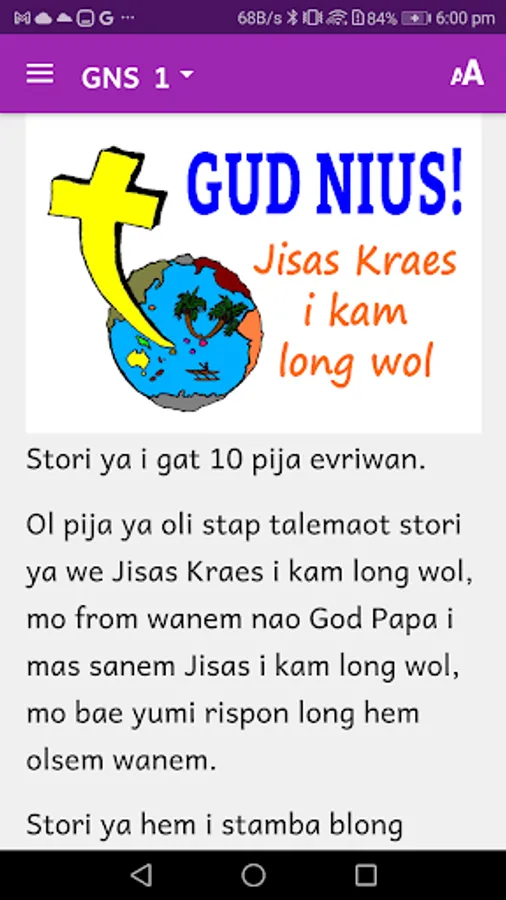 This app is written in Bislama. It is an explanation of the main points of the message of the Good News of Jesus Christ. It uses colourful pictures to help you understand. It is the story of reconcilliation - how we can be friends with God. It tells us that when we are friends with God then our other relationships can become much better. This app can help you help your friends to know how they be true friends with God. If you are just starting to grow as a Christian, it will help you too.