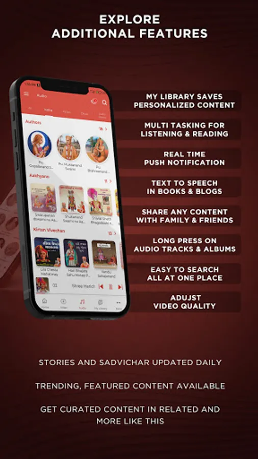 - Audiobooks of renowned sadgranths like Vachanamrut, Bhaktchintamani, Hari Smruti, etc.