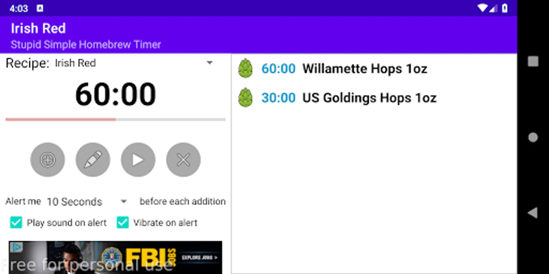 Instructions are simple, you give a recipe a name and add ingredients with how long they should boil in the kettle. When the timer is activated, it shows when you should add ingredients and will alert you when its time. You can also have it alert you 10 or 30 seconds early to give you a little extra time too.