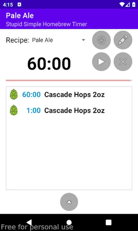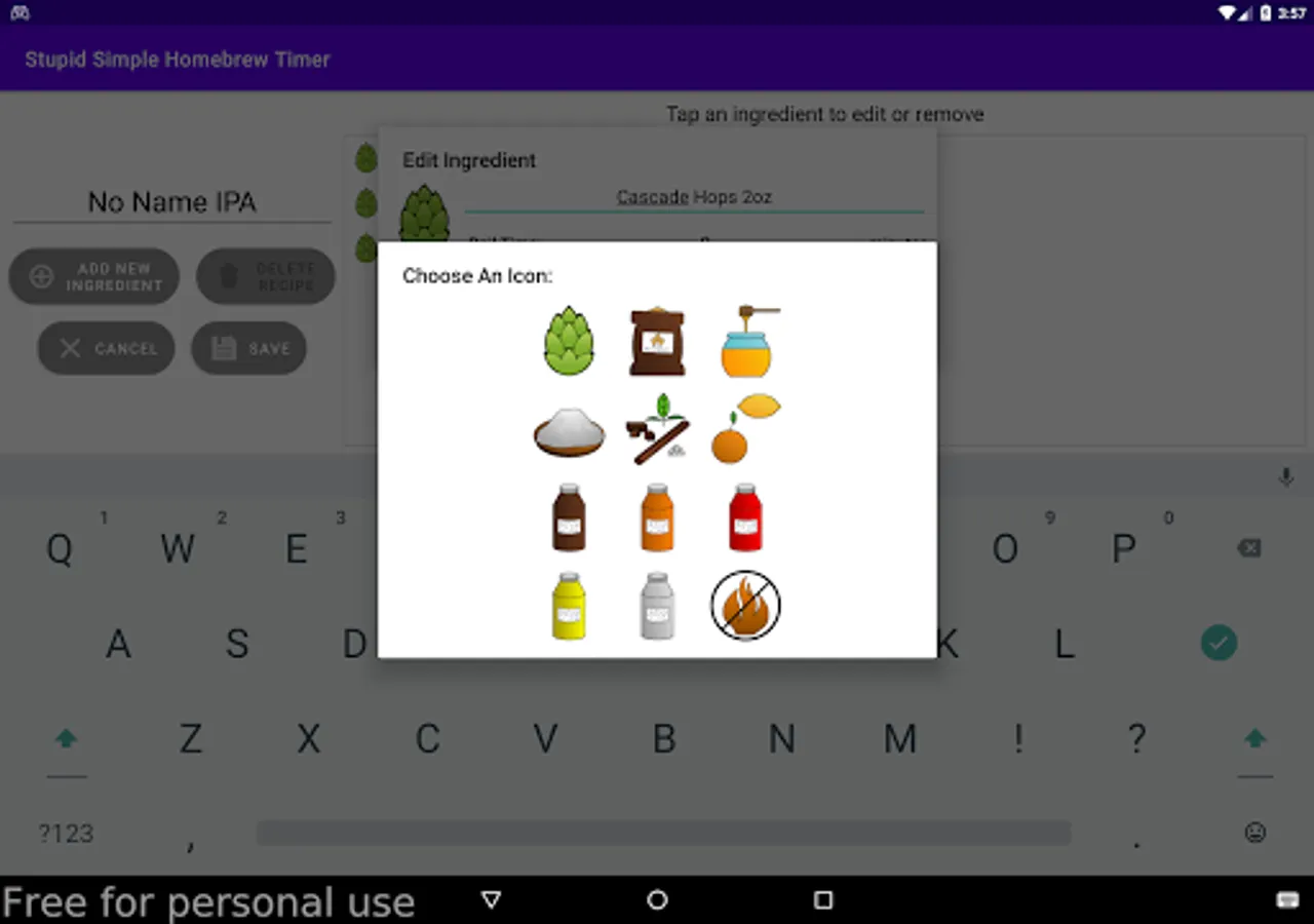 The timer will assume the ingredient with the longest cook time is the total time for the boil. All recipes are saved and can be edited/deleted.
