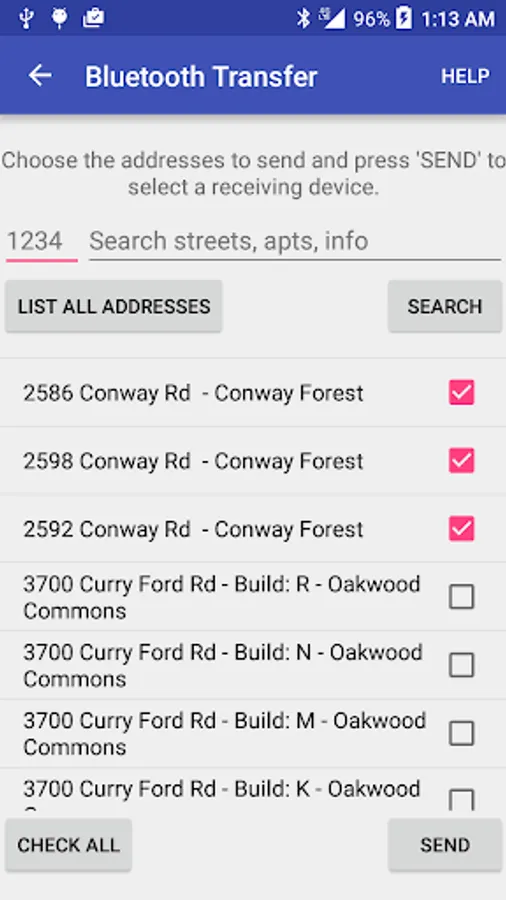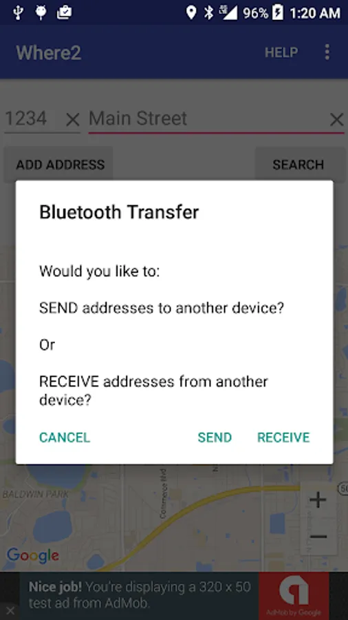 You can share some or all of your addresses with another device with Where2's bluetooth option. So you can update new coworkers with all your addresses and speed up their deliveries.