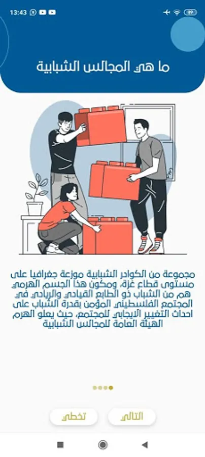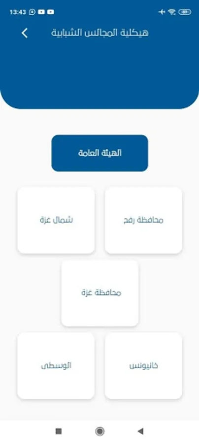 A group of youth cadres geographically distributed in the Gaza Strip, and the component of this hierarchical body are young people with a leadership and pioneering nature in the Palestinian society, who believe in the ability of young people to bring about positive change in society, where the pyramid is topped by the General Authority of Youth Councils.