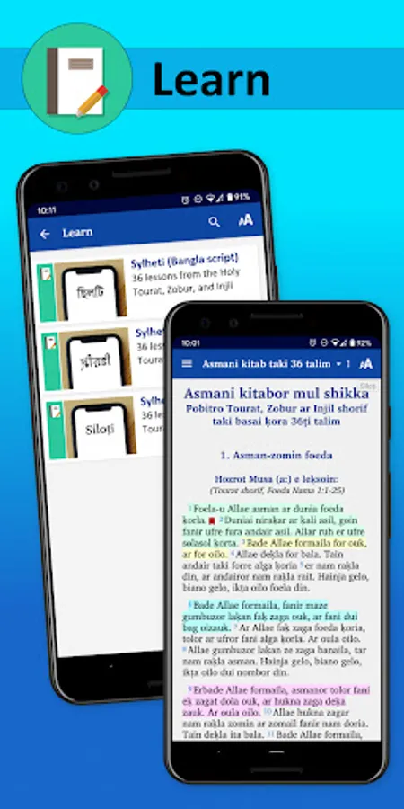 - Share audio or create audio/text videos of verses from the Sylheti Injil