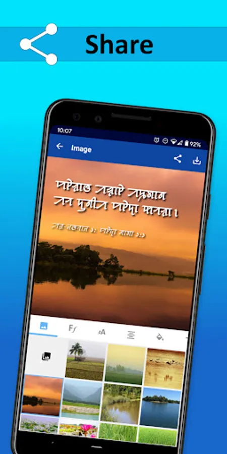 - Create and share verse on image picture posts in all languages/scripts