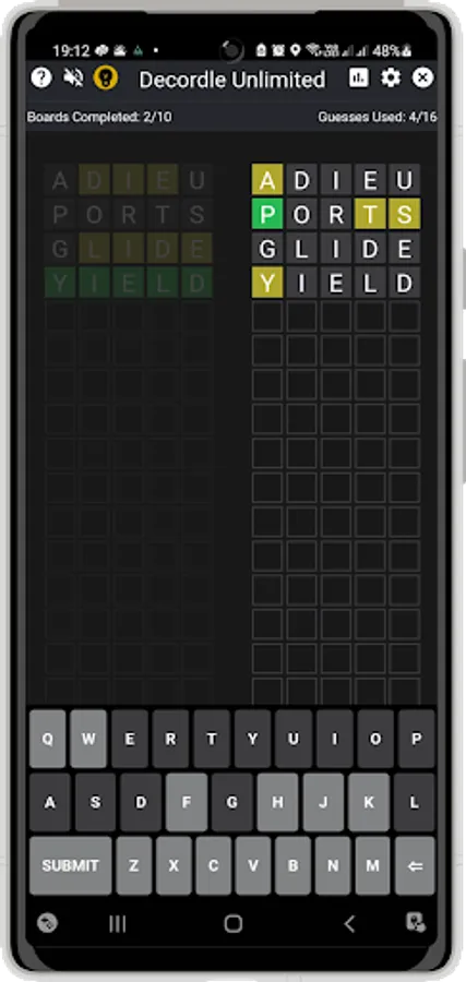 The decordle is also known as marathon mode in the app. You can choose either to play a daily challenge or a free mode where you can play an unlimited number of challenges.