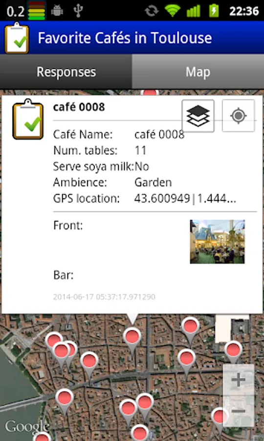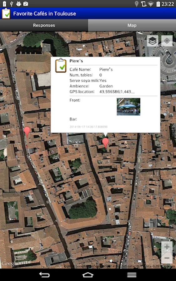 Any results that were captured using a GPS can be visualised on a map either in the mobile app or on the TapSee website.