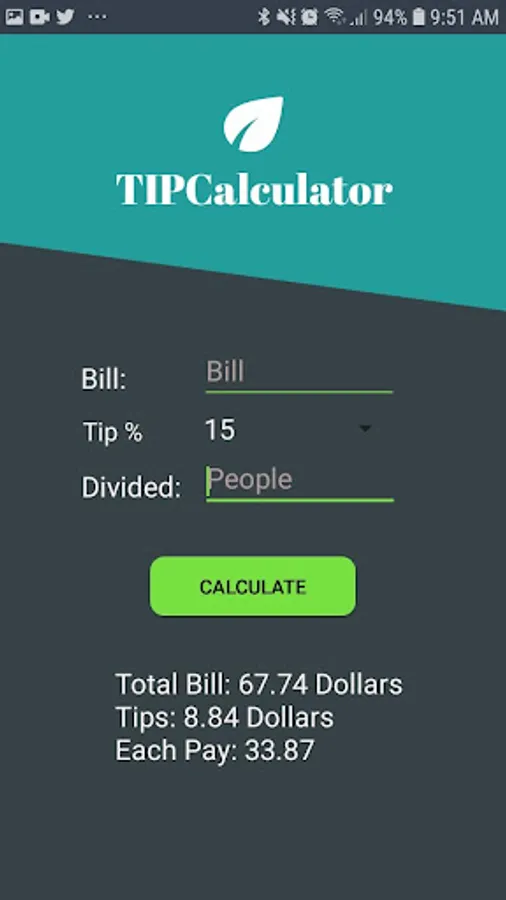 Whether you're out dinning with friends and family or just by yourself, this app does what you need to pay your bill and leave an appropriate tip. It is very easy to plug the numbers and select the tip percent, then press calculate and it will give you the numbers.