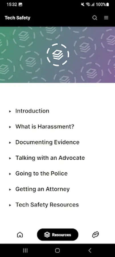 Welcome to the Tech Safety app. This app contains information that can help someone identify technology-facilitated harassment, stalking or abuse, and includes tips on what to do. Although geared toward someone who’s experiencing technology harassment, this app also covers safety and privacy tips that will help anyone use their technology more privately and securely.