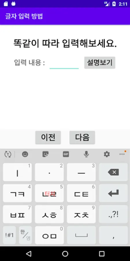 Despite the trend of using a lot of texts as well as telephones as the smartphone spread, unlike in the old days when there were only telephones, the younger generation quickly became accustomed to it, whereas the older generations are still unable to use the keypad. In order to use your smartphone more effectively, you need to use a keypad, but the only person who can teach you to type letters using this keypad is his or her family, but no one will get used to it all at once. I developed an application for repetitive learning.