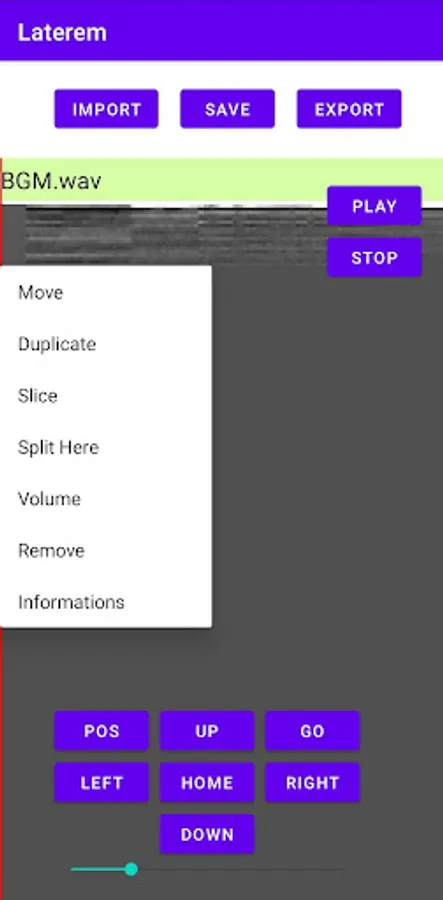 1. Import audio files with IMPORT button. (audio/x-wav)