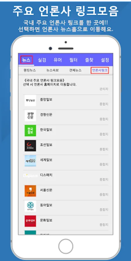 b) 주요 언론사 링크(뉴스홈 바로가기)