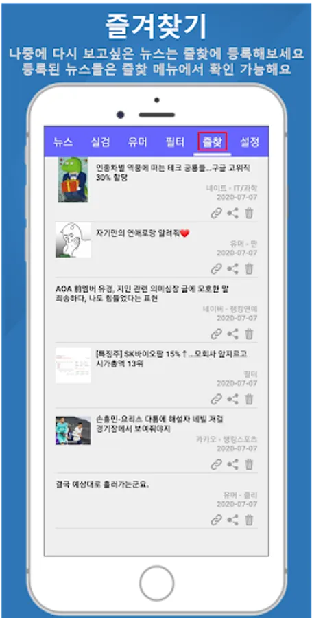 a) 원하는 컨텐츠 즐겨찾기 등록 및 제거